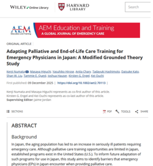 質的研究論文がAEM Education & Trainingに掲載されました! 日本の救急医が終末期患者を診る...