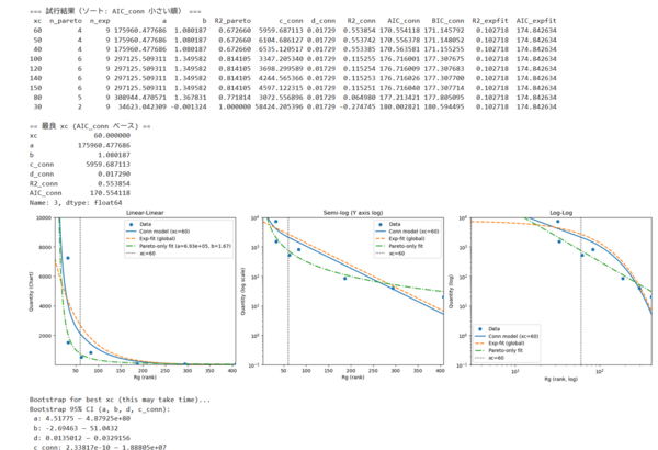 あとはこれまで分布式は手動でパラメータを設定していたのですが、再現性を確保するためにPythonでコードを作って自動で数式を推定するようにしました。こうした「遺物の分布」を示すグラフに対して再現性を確保するやり方は従来の考古学にはなかったものですので、一歩進んだかなと満足しています。