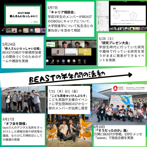通期的に行ったBEAST集会や内部イベントの新人さんいらっしゃい、キャリア相談会を開催しました。