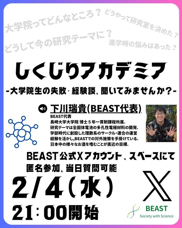 Xのスペース機能を活用した外部発信企画「しくじりAcademia」の第1回を開催しました。