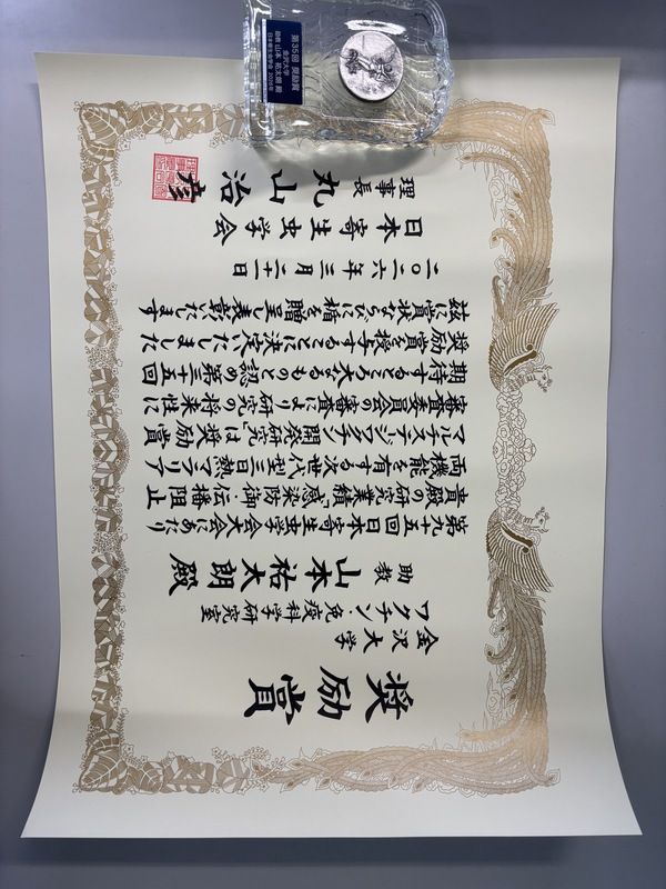 本賞は、これまでの研究成果および将来性が評価された研究者に贈られるものであり、