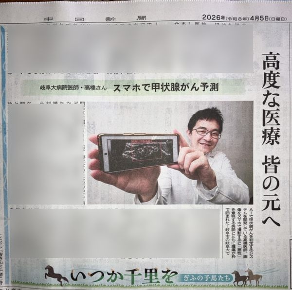 先日、このプロジェクトの土台となった「甲状腺乳頭癌の診断支援AIシステム」についての論文が、日本甲状腺学会の英文誌である『Thyroid Science』誌に採択されました!