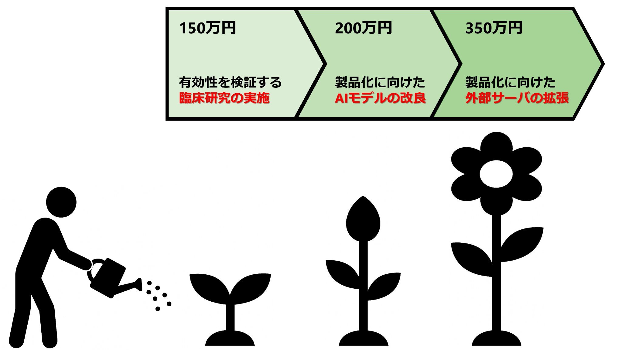 臨床研究の基本的な費用は私たちの研究室で負担しますが、多施設からの膨大な画像データの処理には、システムの改良やAIサーバの拡張が必須となります。そのためご支援いただいた資金は、以下の用途で活用させていただきます。