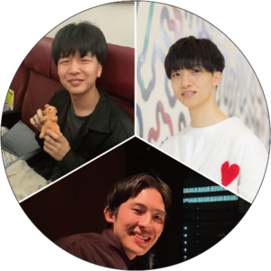 システム行動学研究会を運営している納富(右)、山ノ内(左)、浜道(下)です!