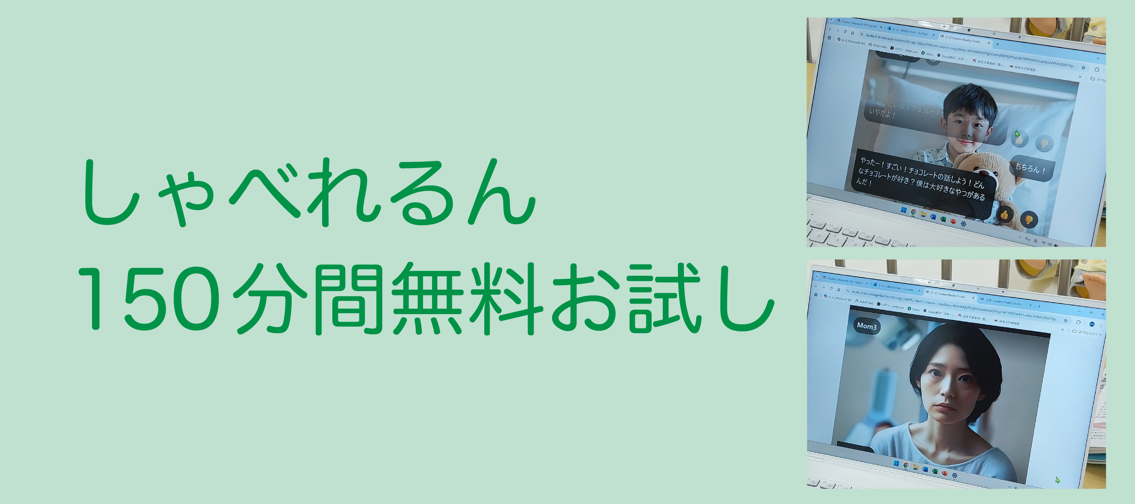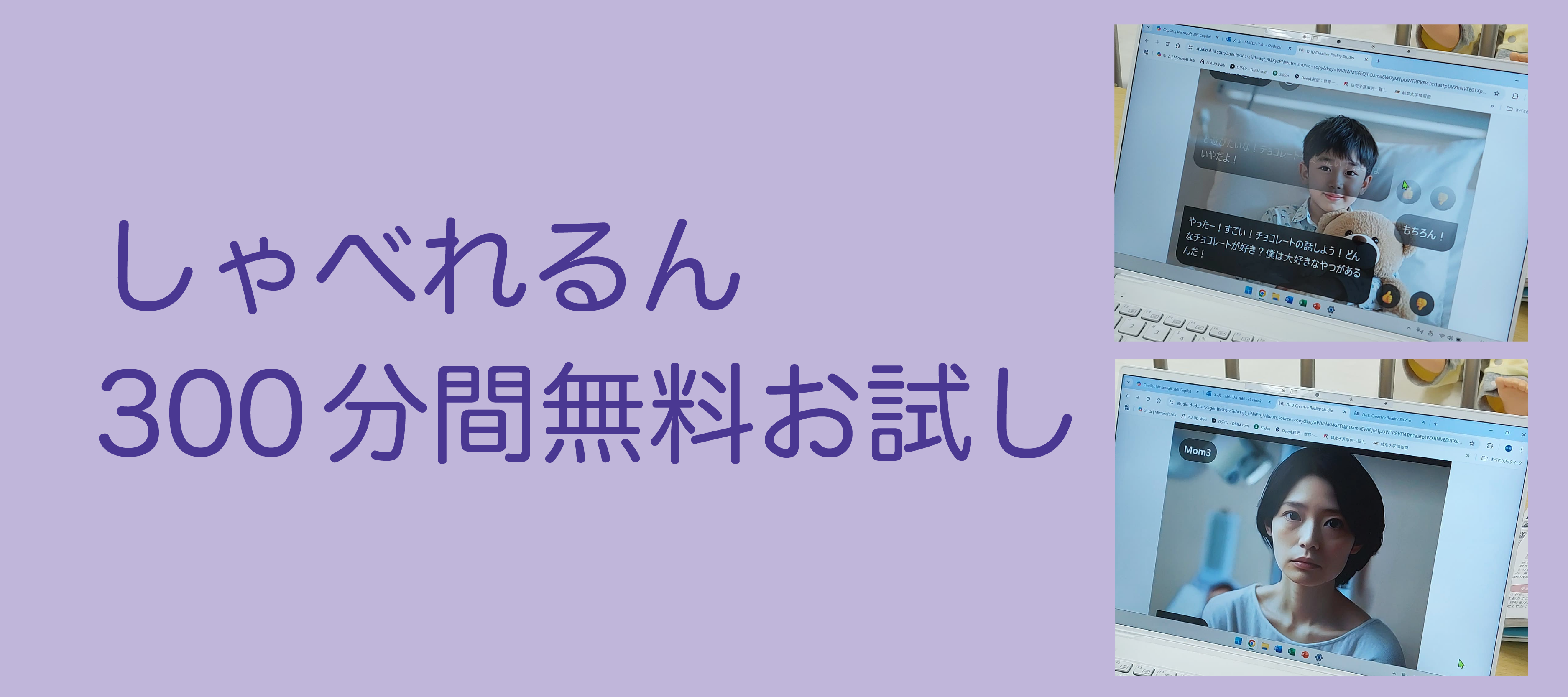 ”しゃべれるん”(子どもと母親15分ずつ)合計30分無料お試しできます。