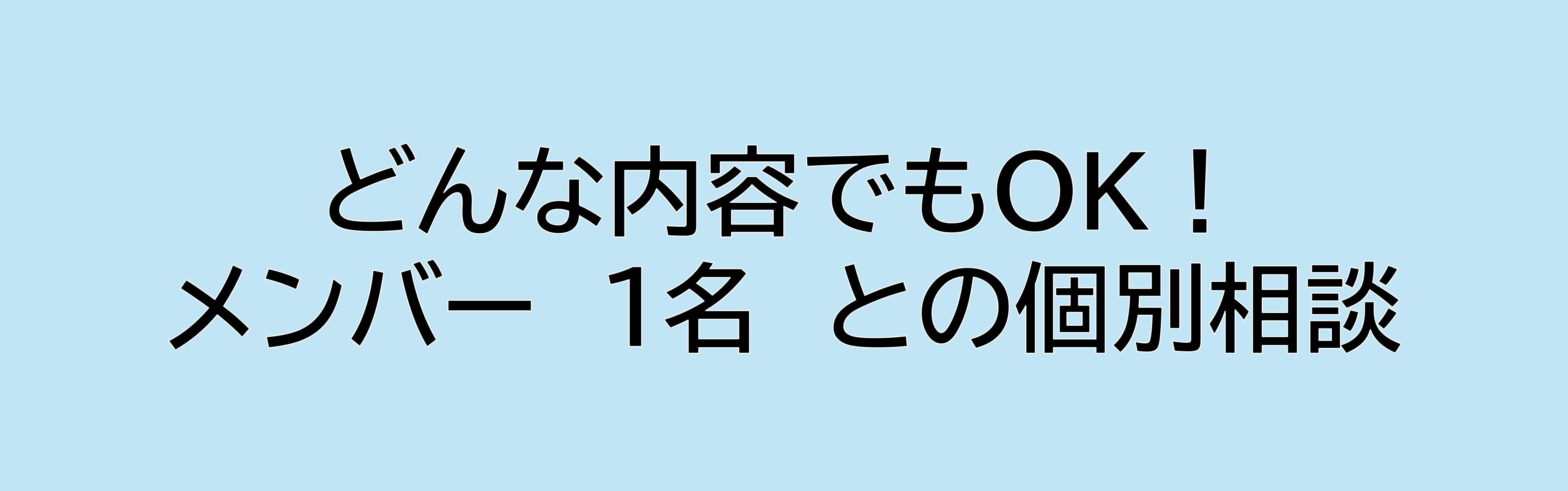 プロジェクトメンバー3名のうち1名と個別にディスカッションする機会を設けます。どのようなトピックでも構いません。本プロジェクトの内容に限らず、研究のことや学業のこと全般のディスカッションも歓迎します。オンラインで実施予定です。対応するメンバーや、ディスカッション内容の詳細、日程については個別にご相談の上、決定いたします。