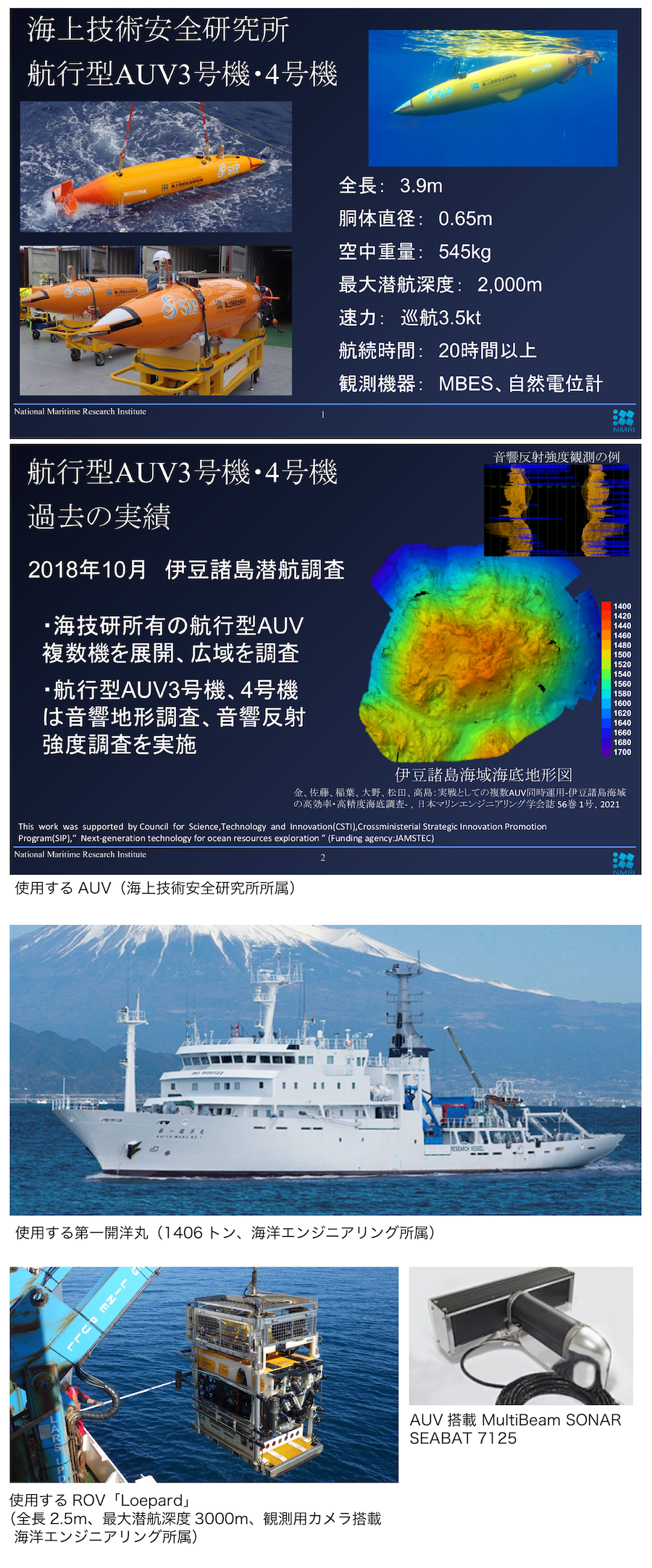 2025年12月の調査と当時の資料を踏まえ、最新鋭のAUV「航行型AUV 3号機」「航行型AUV 4号機」(海技研所属)、ROV「Leopard」(海洋エンジニアリング株式会社株所属)などを使って、第一開洋丸(海洋エンジニアリング株式会社所属)を支援船として、巡洋艦矢矧、および駆逐艦霞、濱風と朝霜の探索をおこないます。