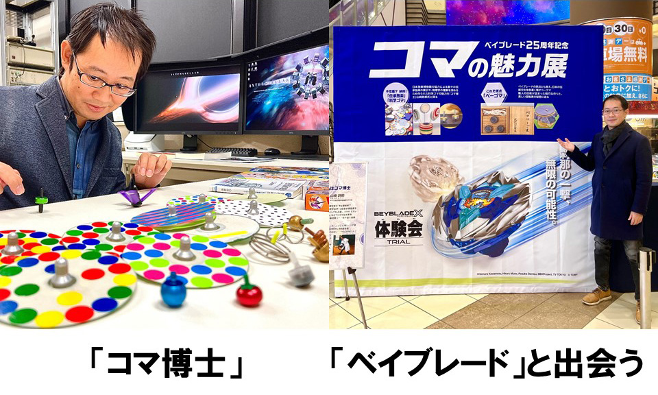2025年1月、全国各地のショッピングセンターで、ベーゴマ、ベイブレード、コマ大戦が融合した「コマの魅力展」が開催され、私はその総合監修を務めました。それからというもの、私は「ベイブレード」に完全にハマってしまいました。「ベイブレード研究会」なるものを毎月開催し、まさにベイブレードで遊びながら科学を学んできました。現在、その結果をプレゼンにまとめ、「ベイブレードの科学」講演会を作り始めています。そして、最終的な夢は書籍「ベイブレードの科学」を書くことです。