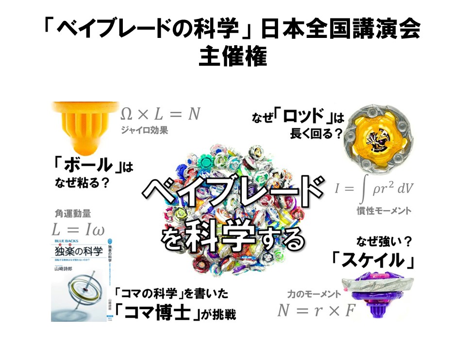 「ベイブレードの科学」講演会を対面で主催いただけます。S1大会などのベイブレードの大会と合わせて開催いただくのもお勧めです。