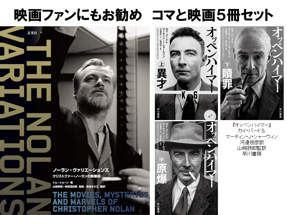 著書の「独楽の科学」、監修本の「クリストファー・ノーランの映画術」、監訳本の「オッペンハイマー(上・中・下)」の5冊をサイン入りでお届けいたします。